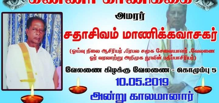 கண்ணீர் காணிக்கை வேலணை மண்ணுக்கு புகழ்சேர்த்த வேலணையின் பெருமைக்குரிய மனிதர் சதாசிவம் மாணிக்கவாசகர் அவர்கள் இறைவனடி சேர்ந்தார் என்ற செய்தி எம்மை பெரும் துயரில் ஆழ்த்தியது, அமரர்...