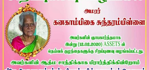 (1). இற்றைக்கு ஒரு நூற்றாண்டுக்கு முன்னர் ஆசிரியர் திரு. வி. கந்தப் பிள்ளை அவர்களால் இயற்றப்பட்ட திருவூஞ்சல் பாடல்கள்.